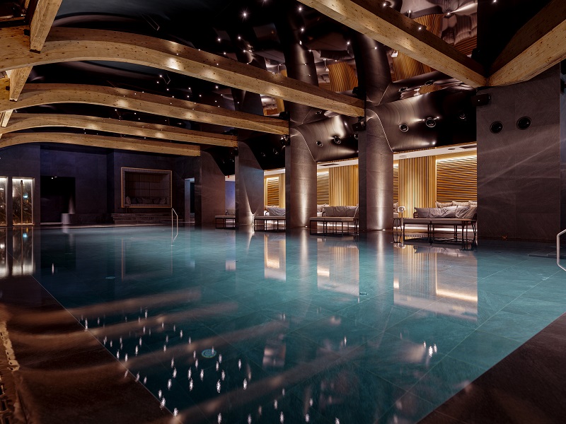Luksuzni sadržaji Ether Spa & Wellness centra na 2000m² - zatvoreni bazen za rekreativno plivanje, bazen i jacuzzi sa toplom vodom na otvorenom, relax lounge, svet sauna, hamam, ledena fontana, tuševi doživljaja, rasul, aromaterapijska laboratorija, Healthy spa bar.
